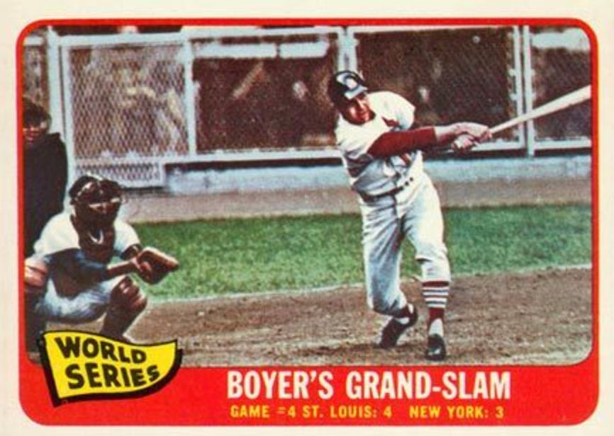 People ask, isn’t baseball super boring? Excuse me! You only have to answer during World Series with the satisfying knowledge that there are ridiculous stats like this. 2024 is only the second World Series where both teams have hit grand slams. You can follow that up with this detail. It was back 1964. The Cardinals got one from Ken Boyer in Game 4 and the Yankees got there’s from Joe Pepitone in game 6. Pepitone it is worth noting was “best remembered for his hair and his high jinks.” But he was also named-checked on Seinfeld.