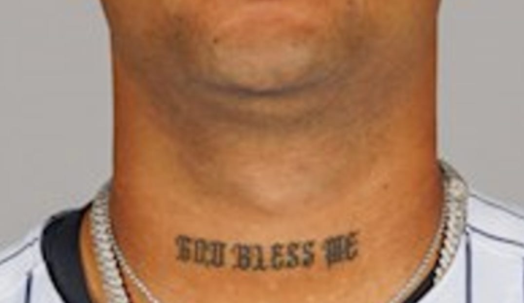 This Yankee starter for Game 4, Luis Gil. His neck tattoo - while not as bad a No Ragrets - is a wild one. I thought there would be more to the story than is found in this Athletic story than “It’s just a message for God to protect me.”