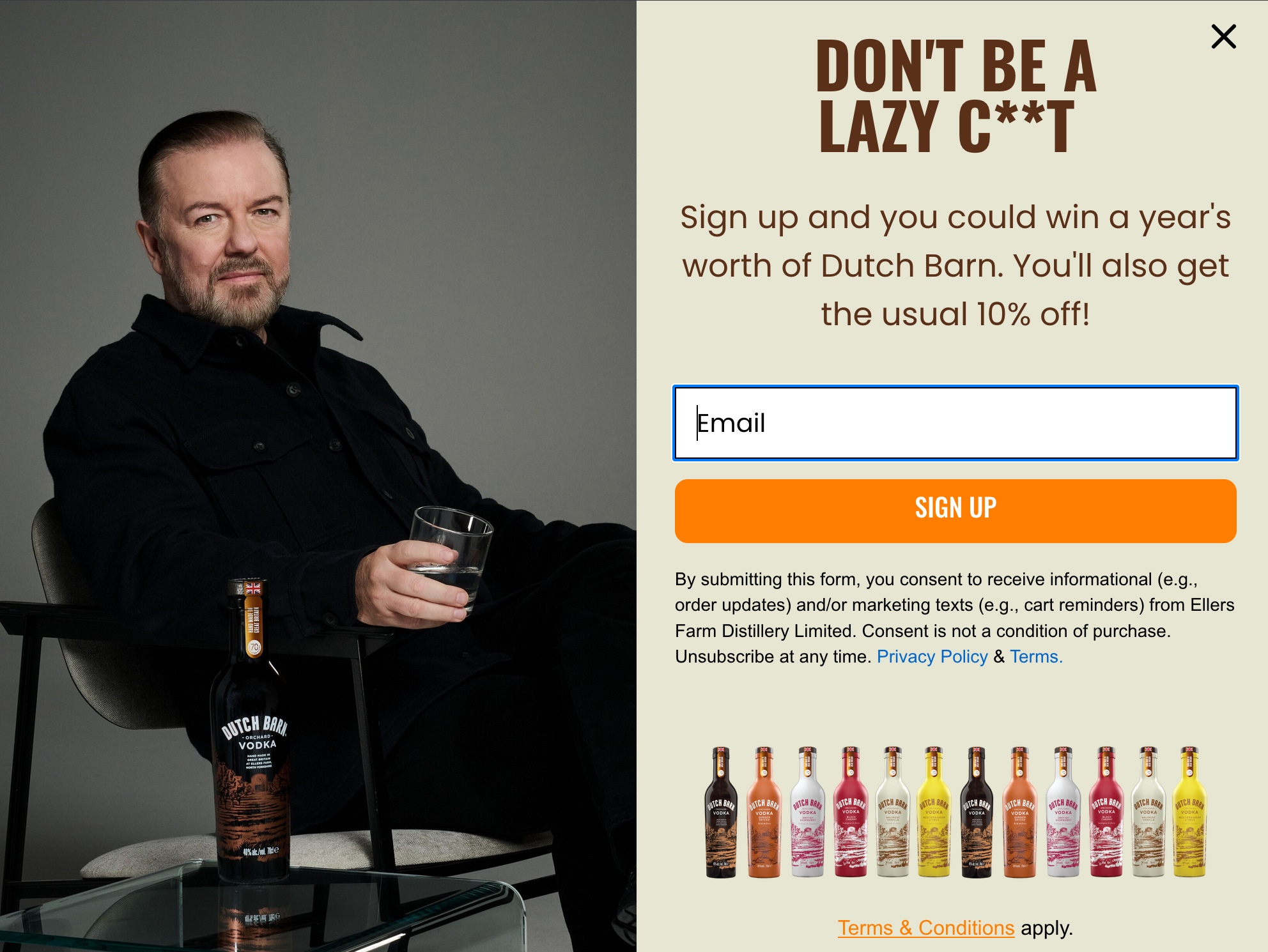 Ricky Gervais got 30,000 new subscribers for his Dutch Barn vodka mailing list and over 100 million views in the last week alone. Not it’s not because his sign up has the All-time best headline of any email pop up ever. The conversion data on this thing must be incredible.