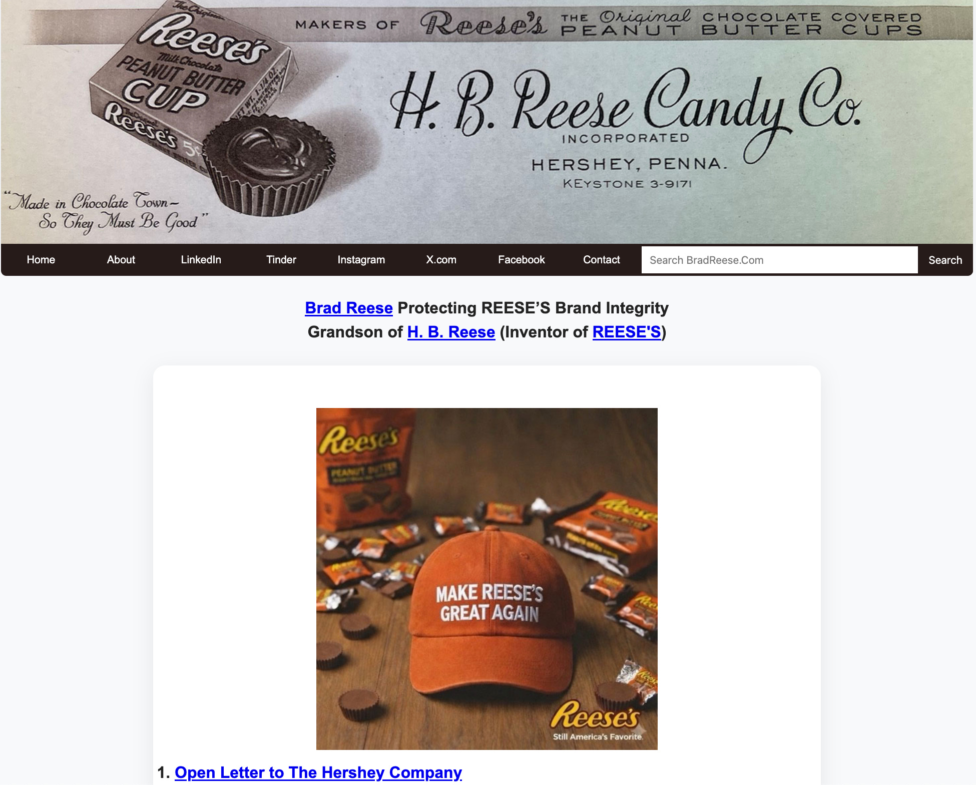 One guy with a terrible website and an open letter on Linkedin got more traction than most campaigns. That man is Brad Reese. Who’s sign off on the open letter was, “Protecting REESE’S Brand Integrity/ Grandson of H. B. Reese (Inventor of REESE’S)”