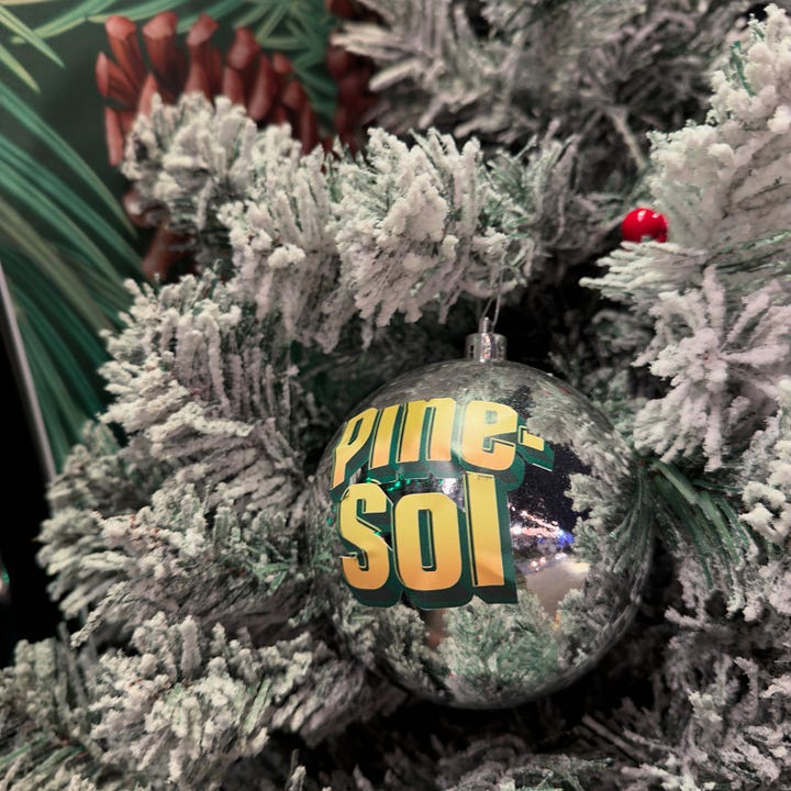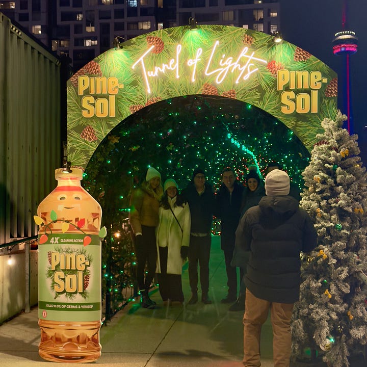 I want to meet the team that activated the cleaning brand like this (and ensured that the giant bottle of Pine Sol had eyes and a mouth. WHY DOES IT HAVE EYES AND A MOUTH.). Did all the light companies say, nah? It didn’t even smell like Pine Sol? It wasn’t even on a floor with brand ambassadors cleaning it. What a waste. Just for that I had to have 2 extra mulled wines.