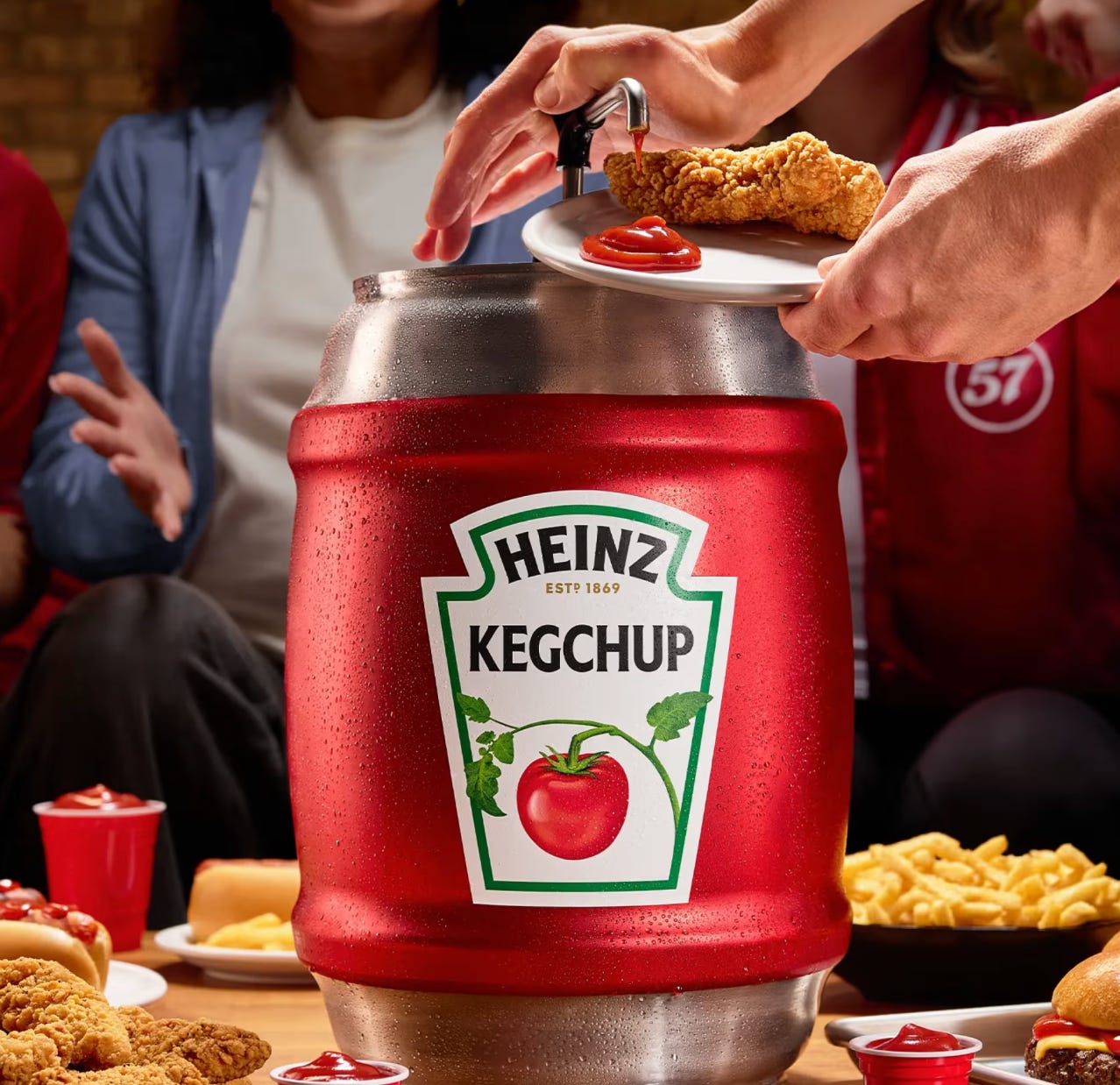 This is a visual gag that exists solely to generate social media impressions. The whole concept assumes that simply mashing two unrelated things together (keg + ketchup) is inherently clever, when really it's just noise competing for attention in an already oversaturated feed.