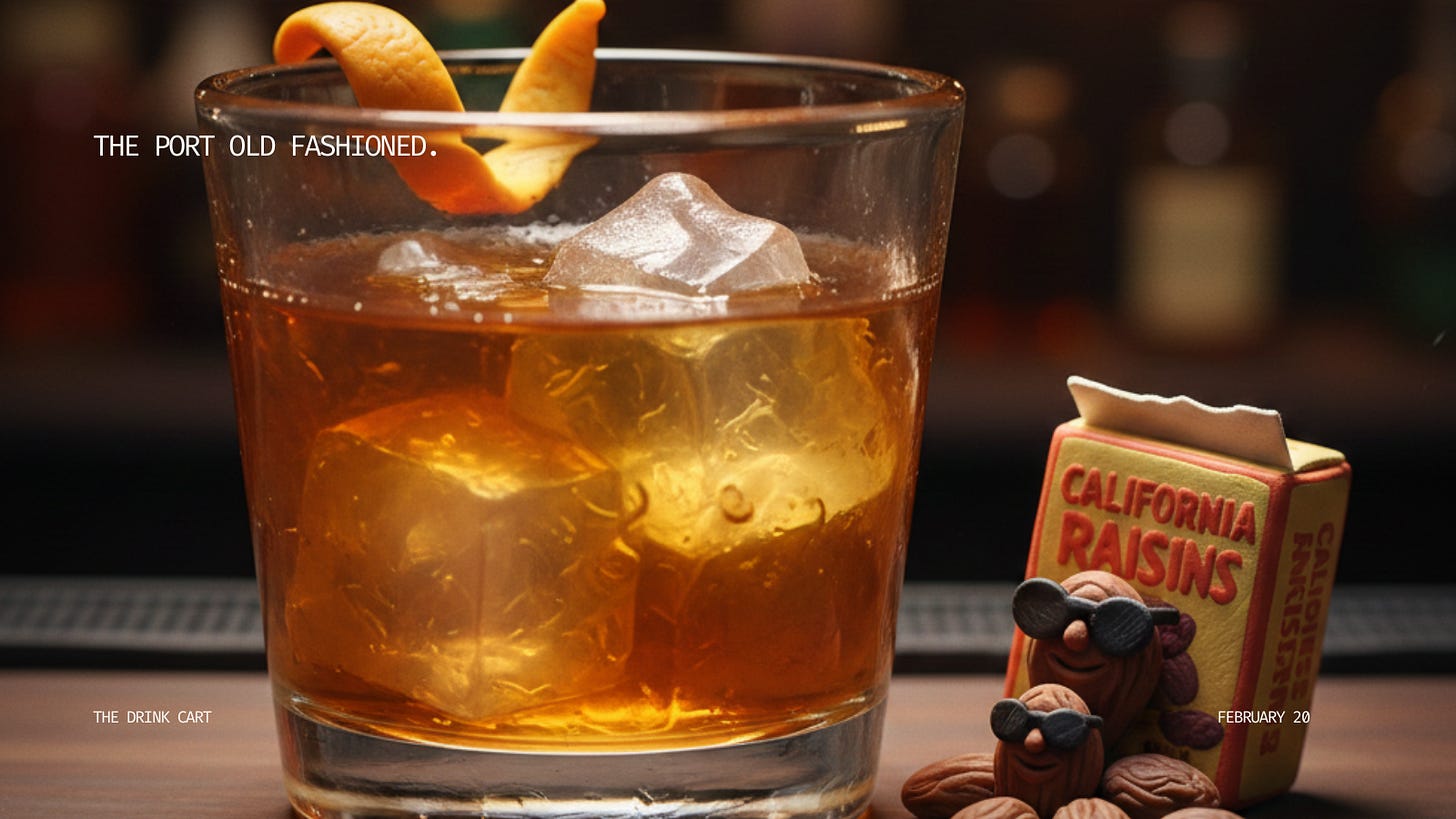 It only seems appropriate to pay tribute to dried grapes by making a mockery of an Old Fashioned by adding some port.