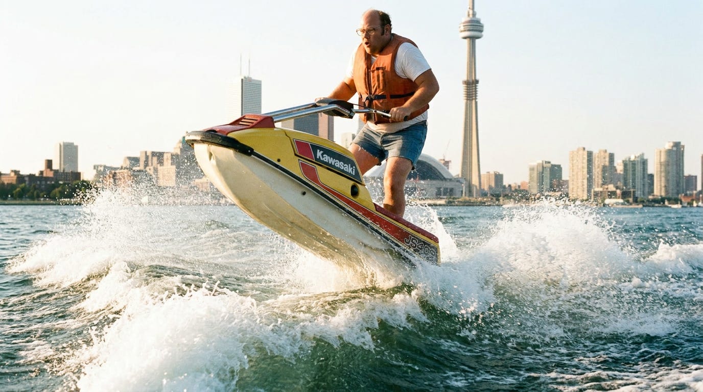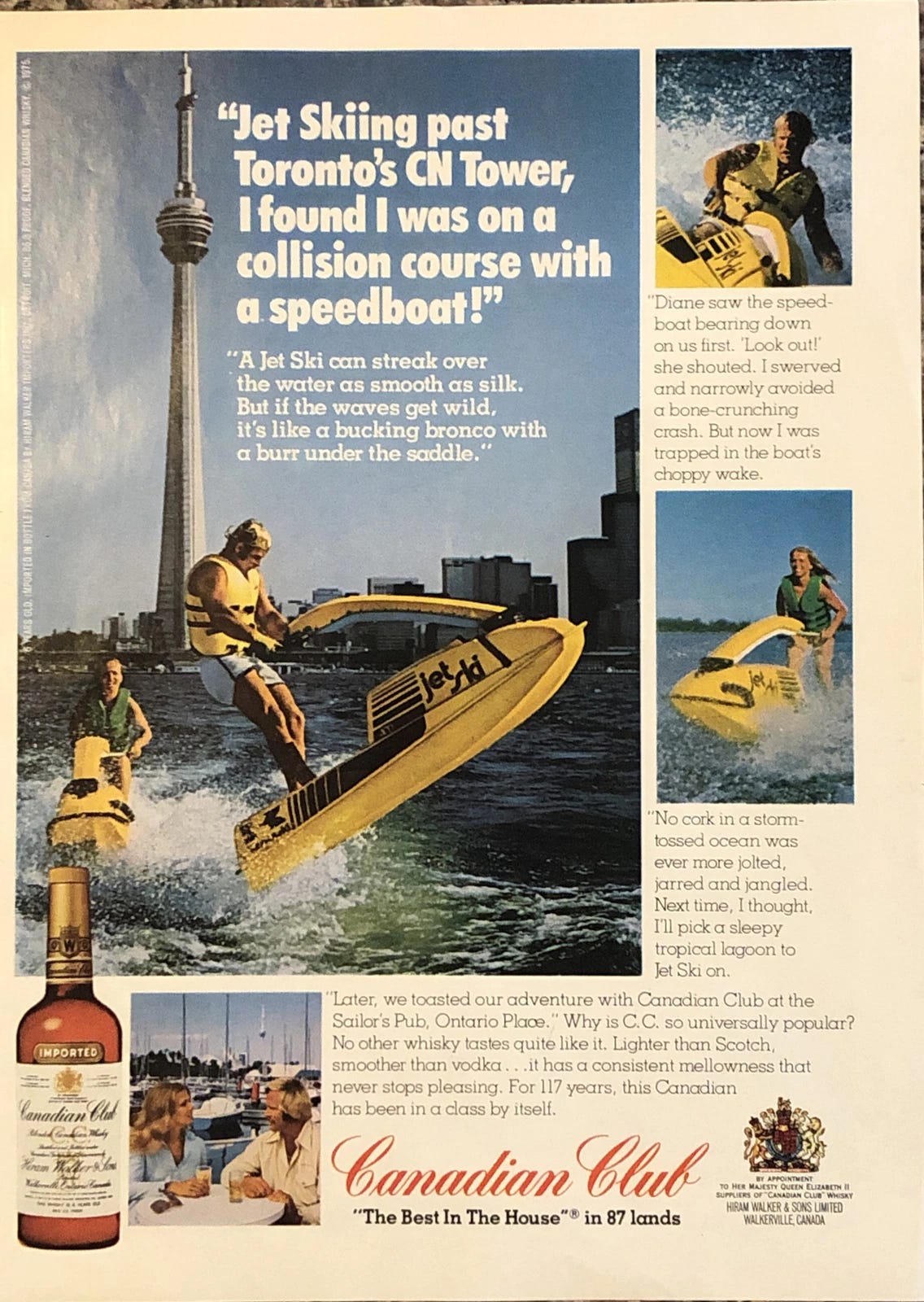 The ad? A humble 1975 Canadian Club print ad. The hero, just like me, is Jet Skiing past the CN Tower.