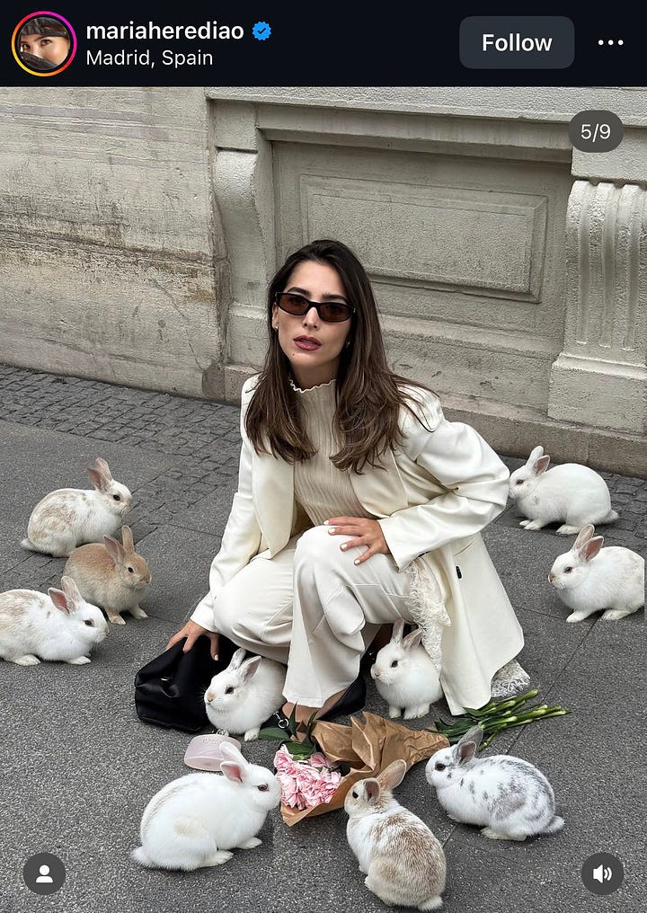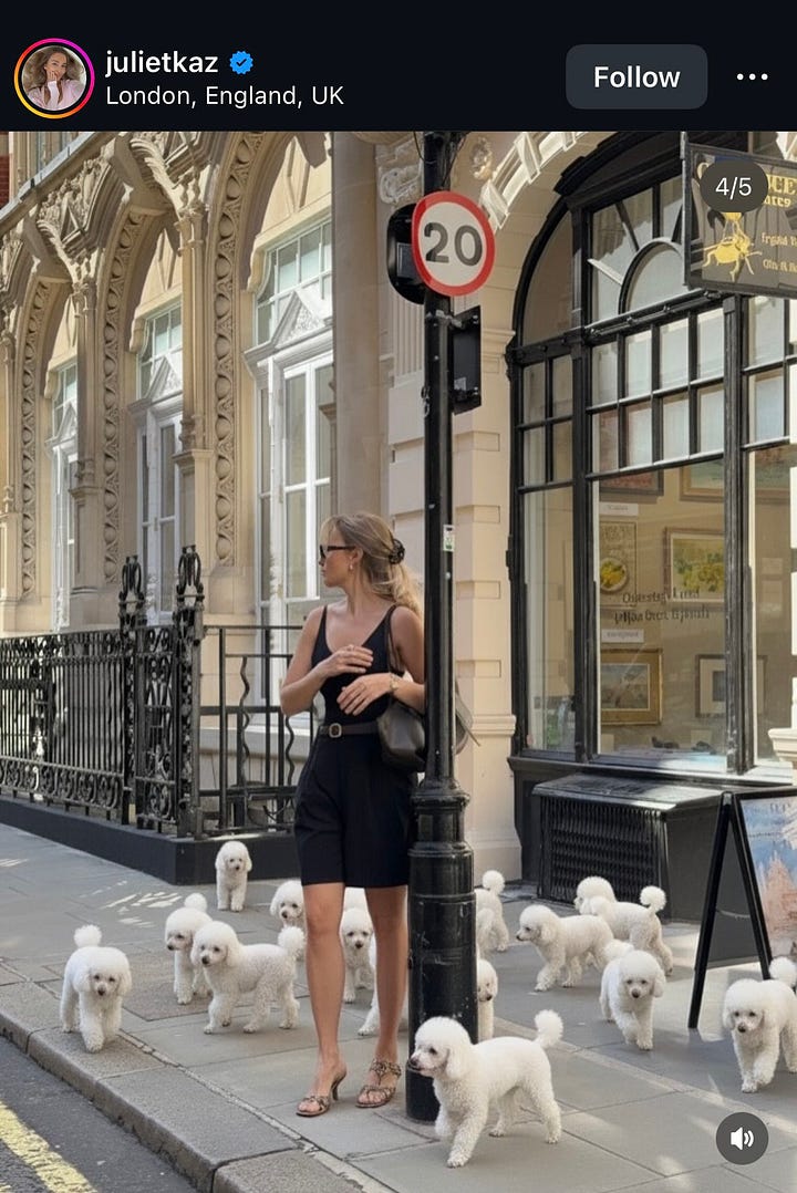 As one of my new favourite trend watching accounts, techbimbo, notes, “hot girls have started using AI. trend i’m seeing; photo-surrealism with cute animals.” I know this is trend worthy because her post has got 26.5 million views. In a quick analysis, most followers bypass any AI-cringe reaction and seem to only be capable of responding with “cute”. The bots are winning.