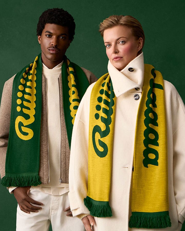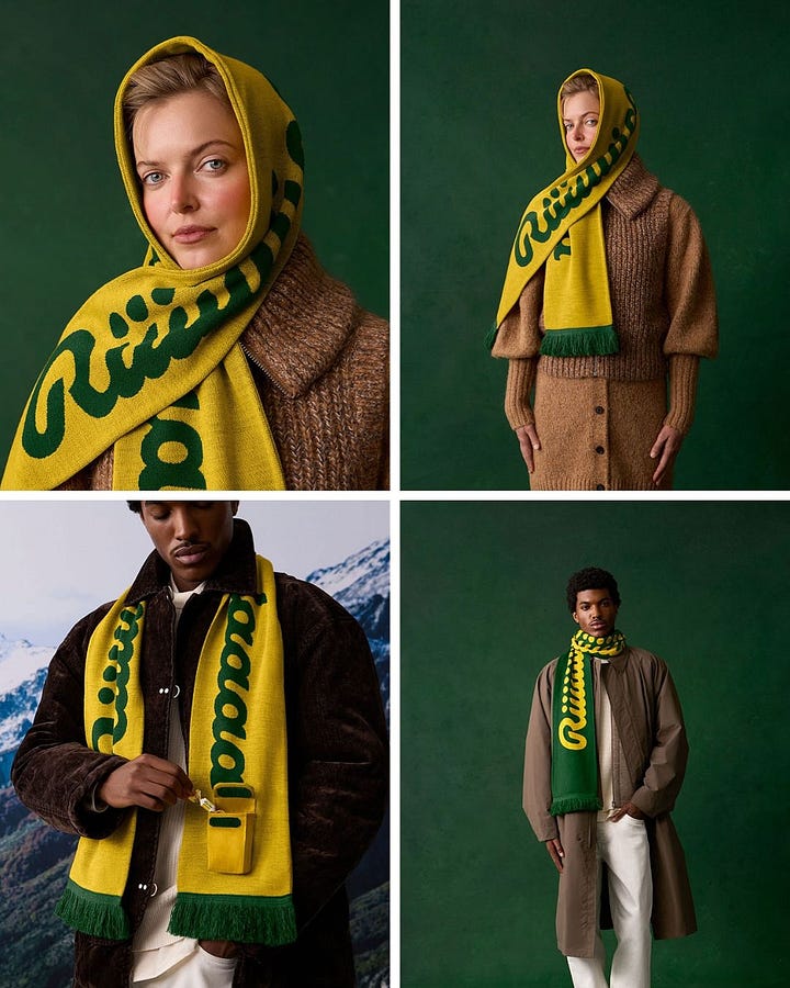 No. I don’t want to wear your sore throat branded merch, Riiiiiicola. But this week was all about scarves. Just like hiring Walton Goggins for your ads, everyone is in on them.