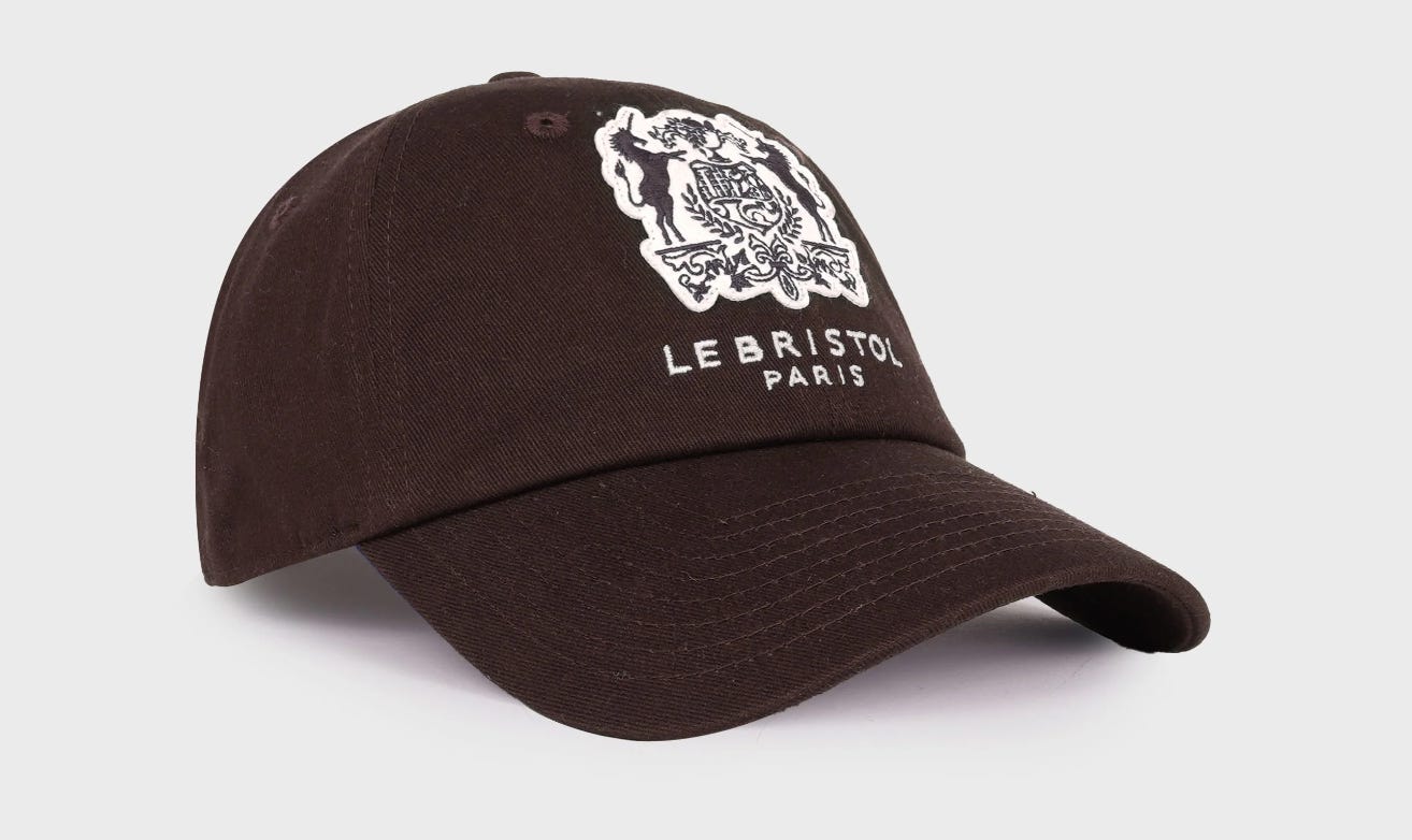 That’s the question the new Sporty & Rich x Le Bristol Paris collection is asking. It’s all about channeling that certain je ne sais quoi attitude. A perfect functional croissant eating hat (not a terrible tagline or idea) if you will. I don’t hate that. But nothing says ‘chic’ like paying triple digits to have people wonder if you really stay at Le Bristol. I highly recommend going to the Bristol website, if only to see one of the best 100th anniversary logos I’ve ever seen.