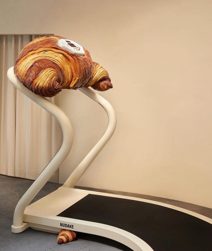 This is the Croissant Gym from eyewear brand Gentle Monster’s cafe brand NUDAKE. It’s absolutely bonkers. I’ve never needed a croissant kettle bell more. Originally spied from Andrea from Snax Shot. Full disclosure, she also had me bookmark these rad Tito’s vodka matches.