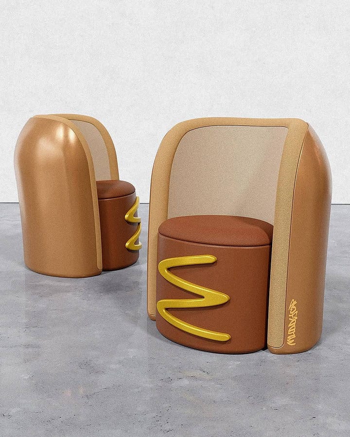 The real question of today’s newsletter. Do you want a Louis Vuitton Gyoza bag or a chair that is a hot dog? Kind of an existential question, yes?