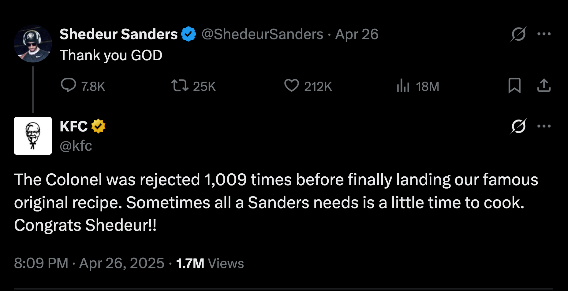 When he posted his thanks, another brand’s social team with Sanders in the name went to work. So good.