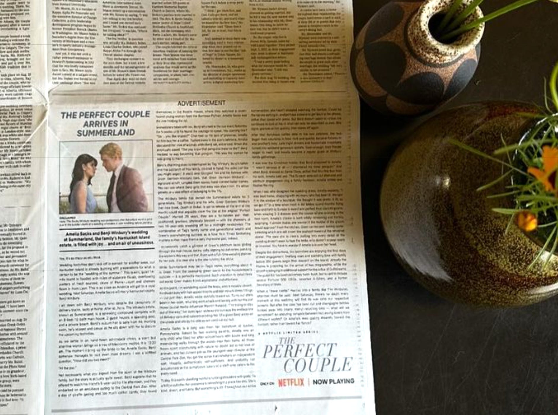 This perfectly placed, unconventional TV series ad for Netflix’s The Perfect Couple was posted in the wedding section of the New York Times. Love seeing what the team from Fonzie is doing copywise. 10/10 placement and story.
