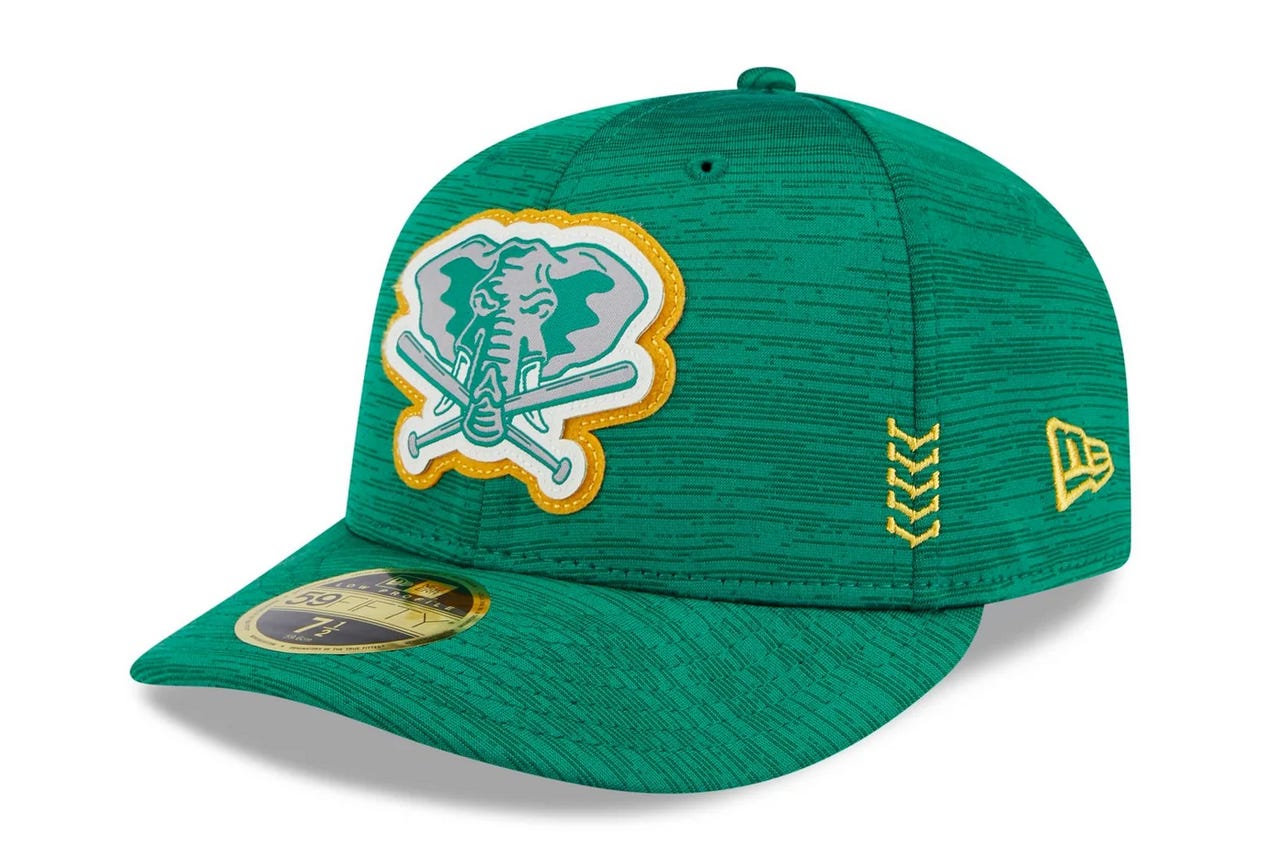 To honour the Oakland Athletics on their last week in the city this week, we are going full A’s. And that is hard, since I’m still not over them just walking away with the 1989 World Series - this hat is a hate crime. But I’ve always liked their alternate Elephant logo so this cheeky 2024 Clubhouse Low Profile 59Fifty fitted does the job. Although the Batting Practice version is legit too.