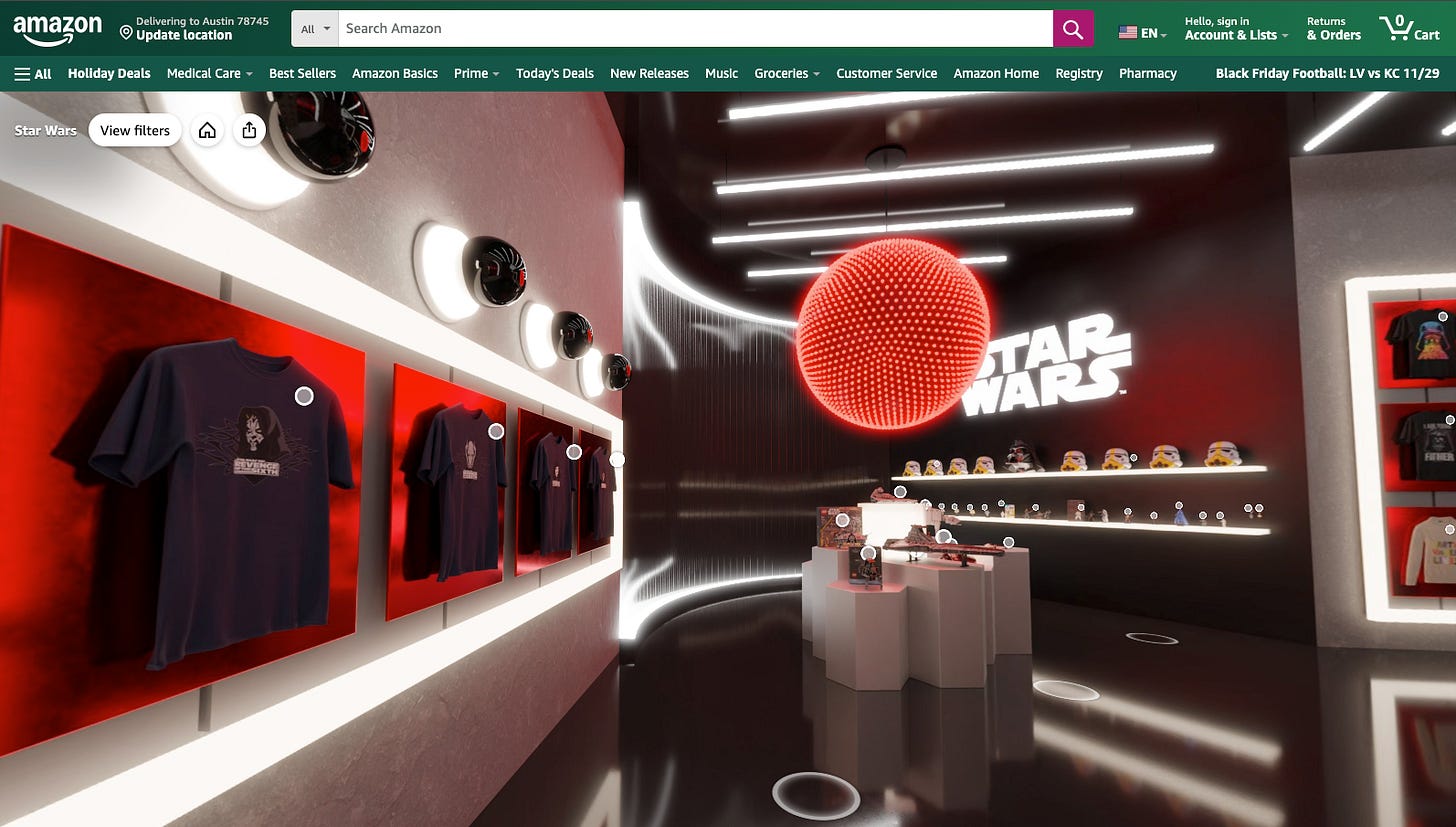 Amazon has jumped into the Metaverse offering up a holiday shopping experience of over 100 easily shoppable gifts. I’ve seen lots of people posting about the nostalgia of malls and shopping in the 1990s, but doing an elaborate interface over the top of the simplicity of Amazon isn’t something I get in 2024.