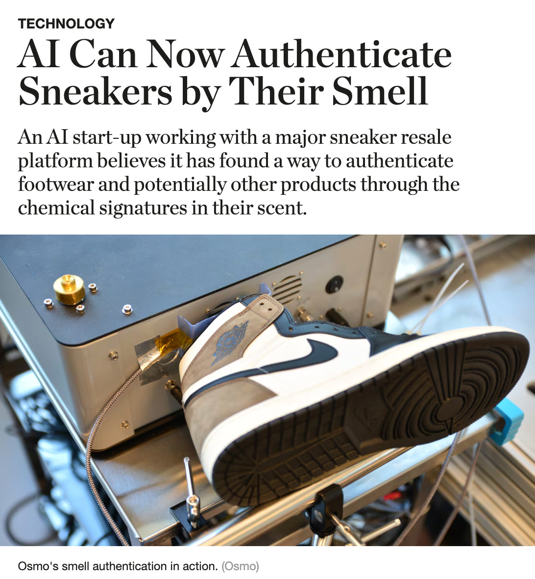 Hypebeast writes, “Human authenticators have already been sniffing sneakers to spot fakes for years along with eyeing physical characteristics.” Isn’t it amazing that someone out there has a Linkedin bio that says something Senior Olfactory Authenticating Engineer or something like that?