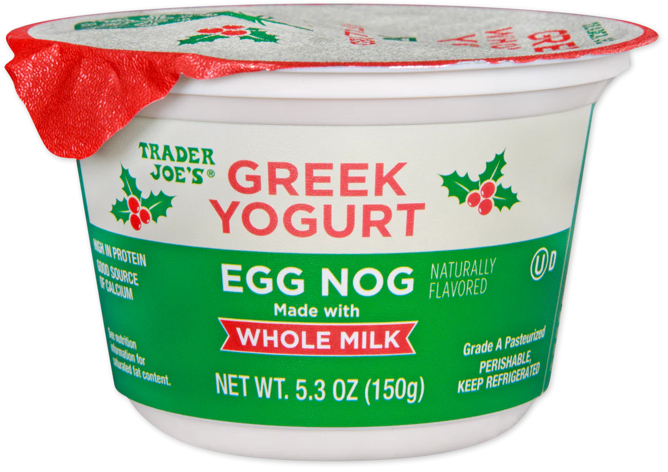 We live in a golden age of Egg Nog and chest pains. “'Tis the season, Marge! We only get thirty sweet, noggy days. Then the government takes it away again.” Leave it to Trader Joes to have introduced a limited time breakfast nog greek yogurt.