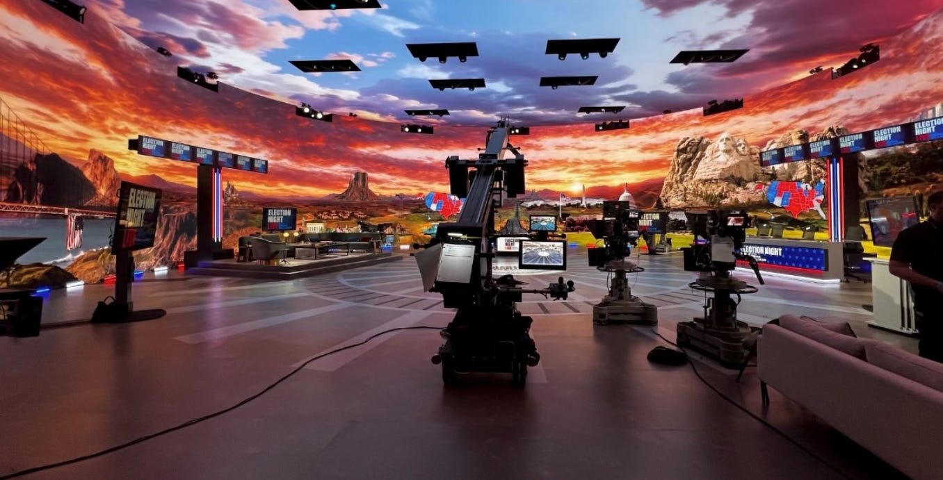 Transporting the studio to feel like it was in the middle of America - perhaps a bit too on the nose, but it looked slick. I will also give a special nod or shoutout to the Apple News election widget and dynamic island. These were great ways to augment the election experience and they were updating in real time perfectly. There should have also been some candidate branded cigarettes like in 1988.