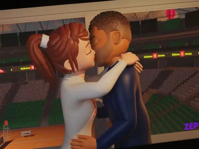 As Vulture notes to level it up our fearless marketing pro, “Emily does a beautiful cultural exchange wherein she teaches the French about the concept of the kiss cam.” But fear not, because she’s not sure if said boyfriend will show up, she prepares a completely off brand “very cool” virtual reality avatar of them kissing to be played at Roland Garros? Emily Cooper you have lost your damn mind girl. Spoiler alert: He shows up. Lame.
